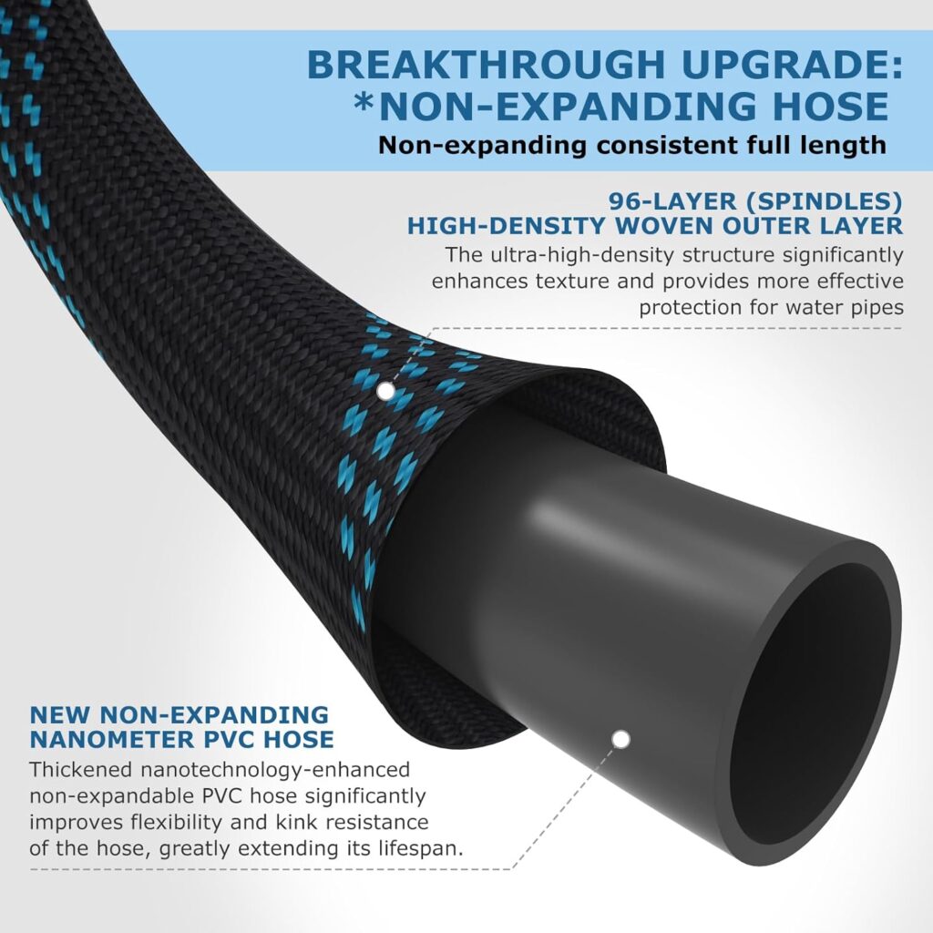 | Non-Expanding Garden Hose 100 ft | KETTOYA | 100 ft | 35 Bars | 10-Function Spray Nozzle, Anti-Kink | Lightweight, Durable, Flexible, Leak Proof | Slightly bulky, Nozzle grip | ★★★★☆ (4.2) |